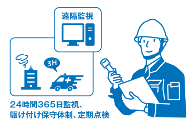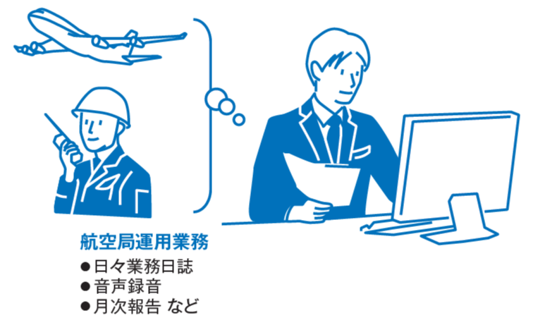24時間365日監視、現地オンサイト保守、定期点検、航空局運用業務(日々業務日誌、音声録音、月次報告 など)