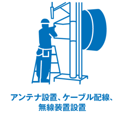 アンテナ設置・ケーブル配線・無線装置設置、回線・ネットワーク構築、システムセットアップ・テスト